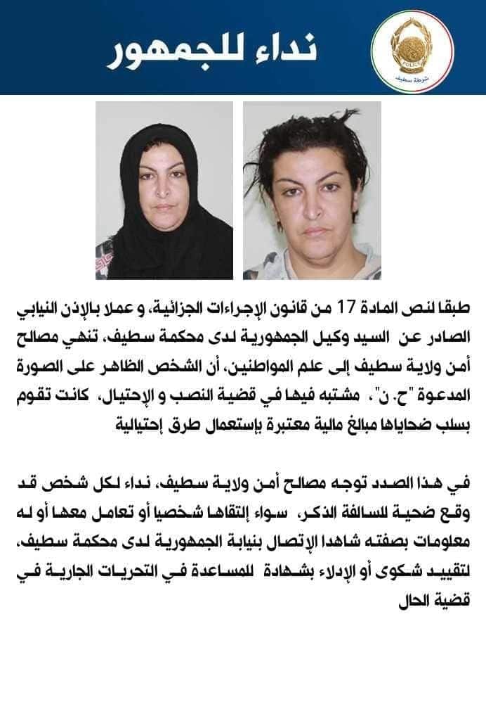 إعلان الشرطة حول قضية ح.ن متهمة بالنصب والإحتيال