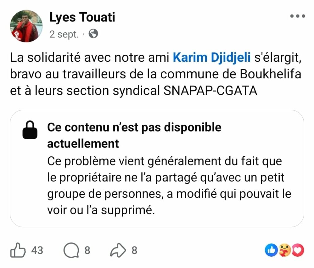 إن الدفاع عن إلياس تواتي، وعلي معمري، وغيرهما من النقابيين المسجونين، سواء كانوا من الاتحاد العام للعمال الجزائريين أو من النقابات المستقلة، هو دفاع عن جوهر الحق النقابي، وعن الحد الأدنى من دولة القانون، وعن مصداقية العدالة نفسها.